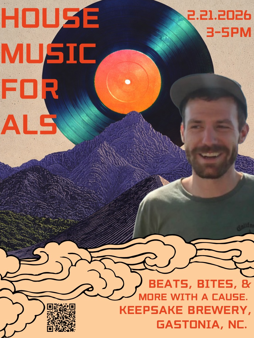 For friends in the Charlotte/Gastonia NC area ⇨ Join us for House Music for ALS this Saturday, February 21, 3-5pm! Proudly hosted by Keepsake Brewery (211 Columbia St, Gastonia).